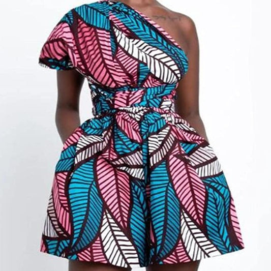 Robe Imprimée Wax Combi-short Rose et Bleu