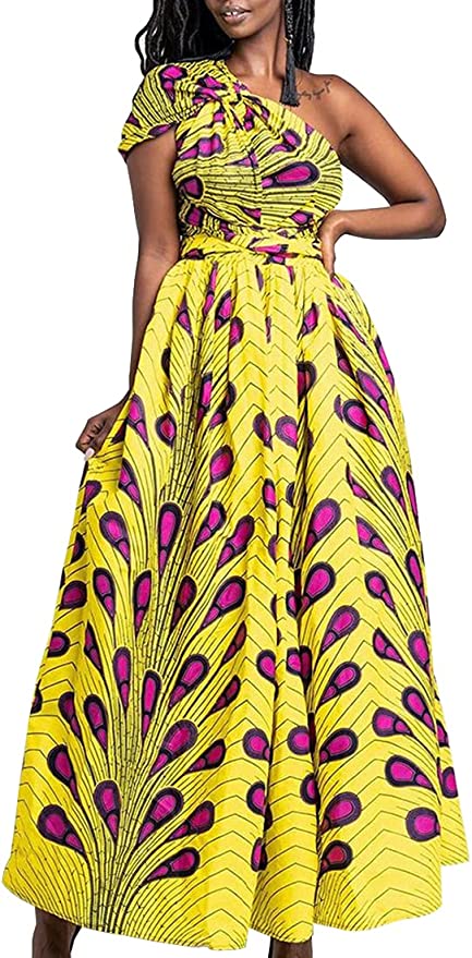 Robe Imprimée Wax Grande Taille Afrique Plume Violette fond Bleue